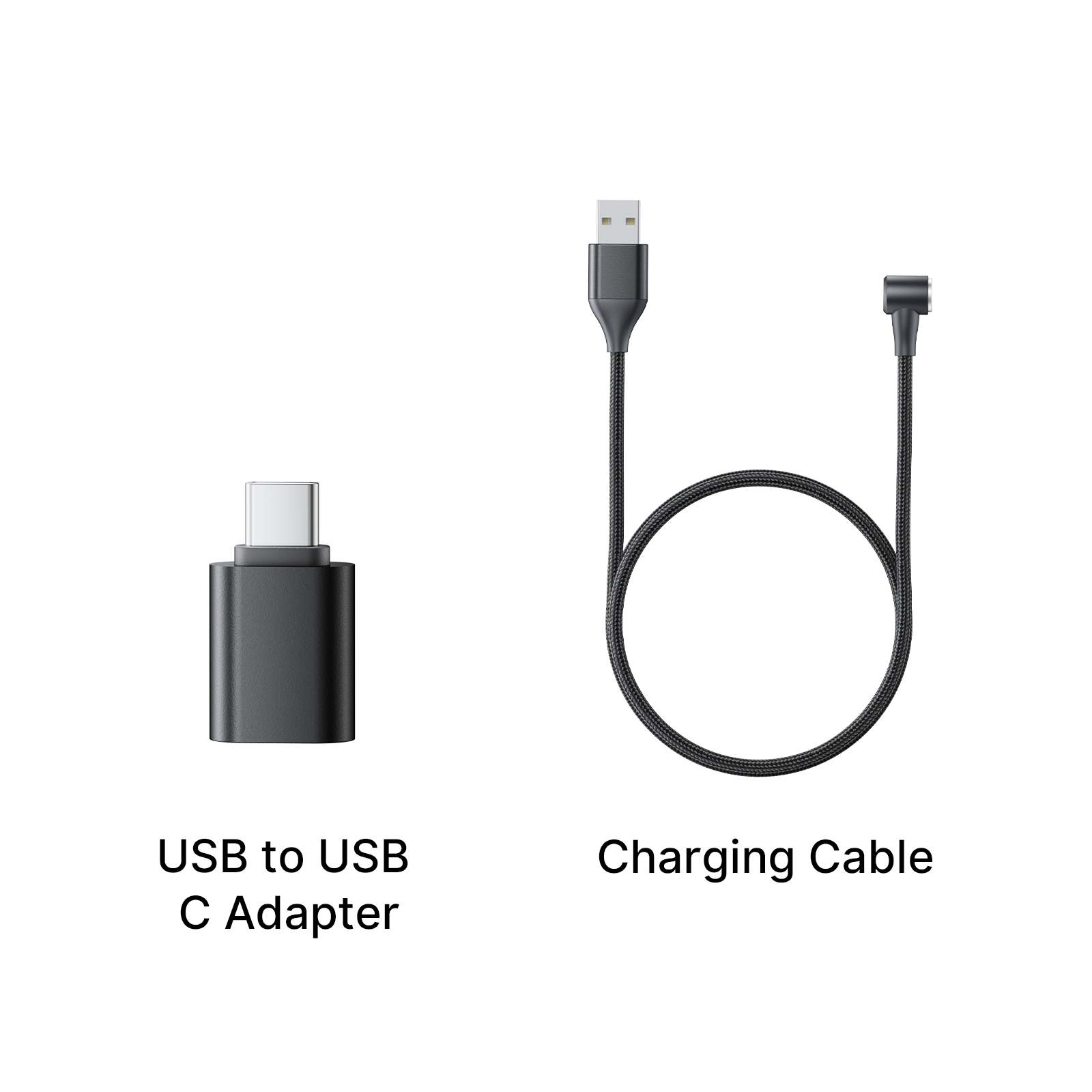 Package includes: Charging Cable*1, USB to USB-C OTG Adapter *1.