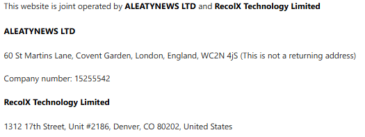 links. RecolX Technology Limited, Ltd. does not assume responsibility for
