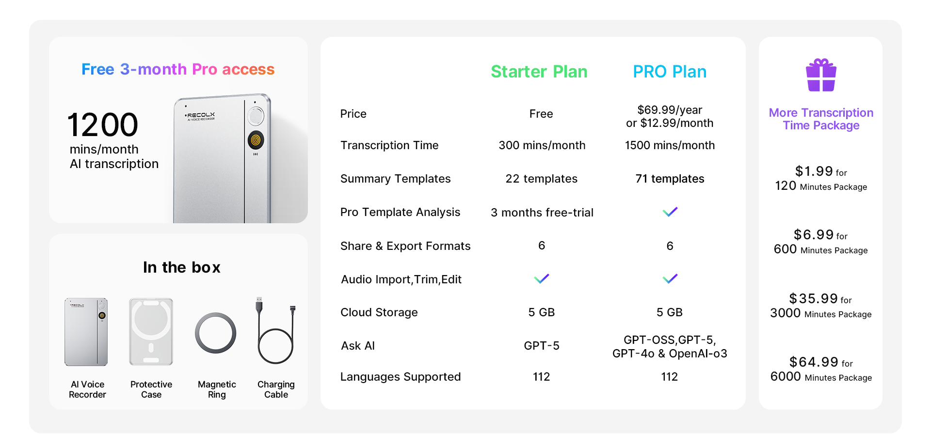 Need more? Upgrade anytime to Pro Plan or Unlimited Plan for extended transcription minutes.